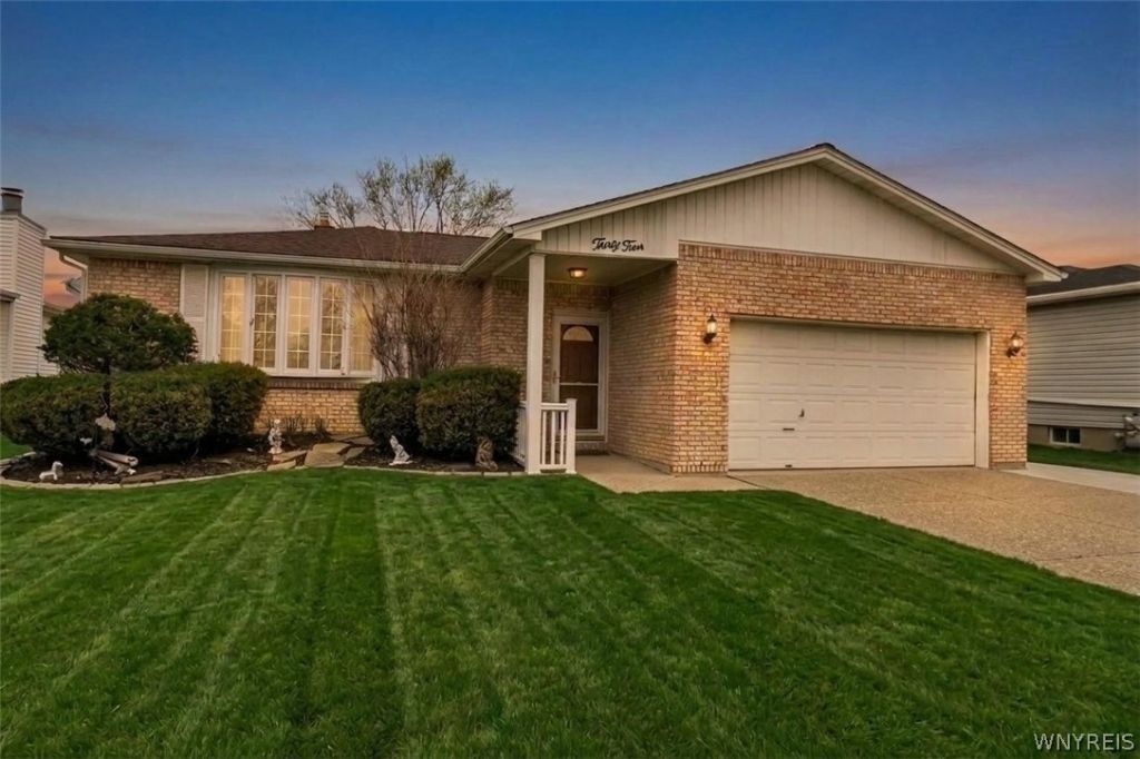 Welcome to 34 S Transithill Dr-tucked away on a quiet neighborhood street just minutes from Transit Rd shopping, dining, and easy Thruway access, with nearby parks like Reinstein Woods Nature Preserve. This all-brick 3-bedroom ranch offers hardwood floors throughout and vinyl windows. Spacious living/dining room with bay window for abundant natural light, eat-in kitchen with ample cabinet and counter space, three bedrooms with closets, and large full bath. Family room features a traditional brick fireplace with wood mantel and half bath, with French doors leading to a bright four-season sunroom with wood burning stove overlooking the yard. Full dry basement with glass block windows, laundry hookups, and high-efficiency furnace. 2-car attached garage, and fully fenced yard.